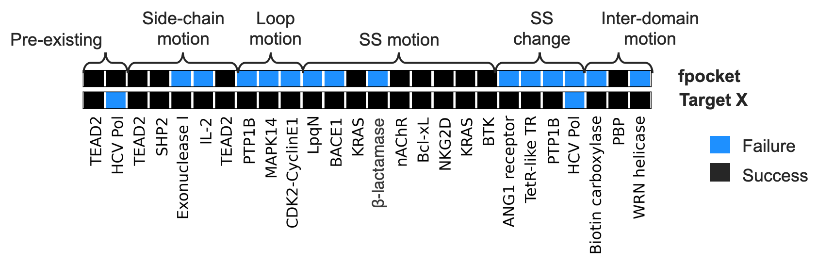 Applied to a dataset of 26 pockets across 21 diverse proteins, Target X method outperforms fpocket and successfully identified cryptic pockets starting from only the apo structure in over 90% of cases